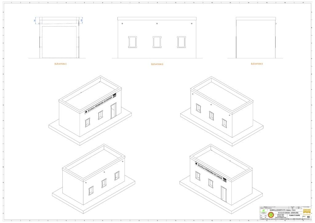 L’associazione bambini nel deserto che gestirà la costruzione della scuola è in a Zargha e ci ha mandato questi disegni per la nuova scuola